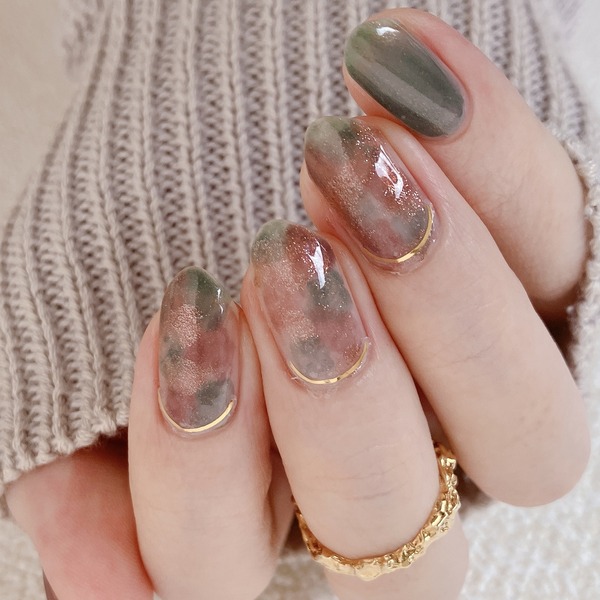 【how to】ブラウンとゴールドハートのバレンタイン透明感ネイル
